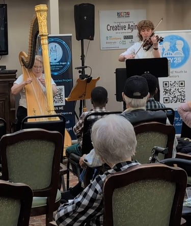 A particularly meaningful aspect of this performance was the collaboration between Elizabeth and her granddaughter, Libby Link, a violinist in the Advanced String Orchestra at White Station High School. Together, they shared a special intergenerational musical connection, bringing Celtic melodies to life in a way that resonated deeply with the residents.